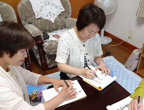 文鮮明師の自叙伝、「平和を愛する世界人として」の文中に登場する言葉を書写し、文鮮明師の愛の心を自分の心に書き写すことを目標に家庭内やコミュニティ内で書写会を催しています。